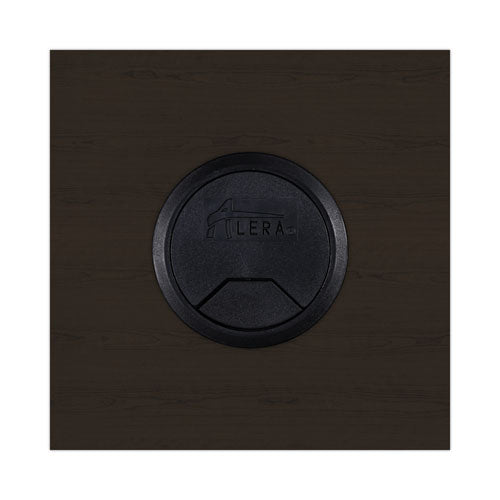 Durable, commercial grade laminate work surface and side panels are water, scratch, and stain resistant. The charcoal accent line under the work surface adds style and a distinctive touch. A protective edge banding helps to prevent damage from bumps. Two grommets for cable and wire management. Full-length modesty panel for added privacy.