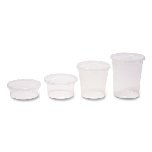 Translucent plastic soup container and lid are great for soups, delis, salad bars, or restaurant take-out applications. This container is designed for transporting, storing, and then reheating hot food items.